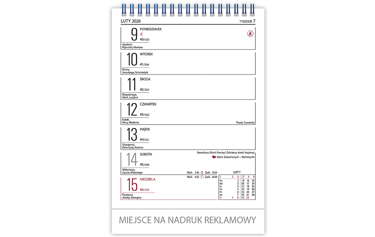 Kalendarz biurowy Merkury to produkt, który powinien znaleźć się na każdym biurku. Posiada on klasyczny układ tydzień na jednej stronie z kalendarium miesięcznym skróconym pozwalający mieć pod kontrolą najbliższe dni. Dzięki specjalnej, sztywnej podstawce (wykonanej z kartonu, w formie trójkątnego stojaka), stabilnie trzyma się na podłożu.